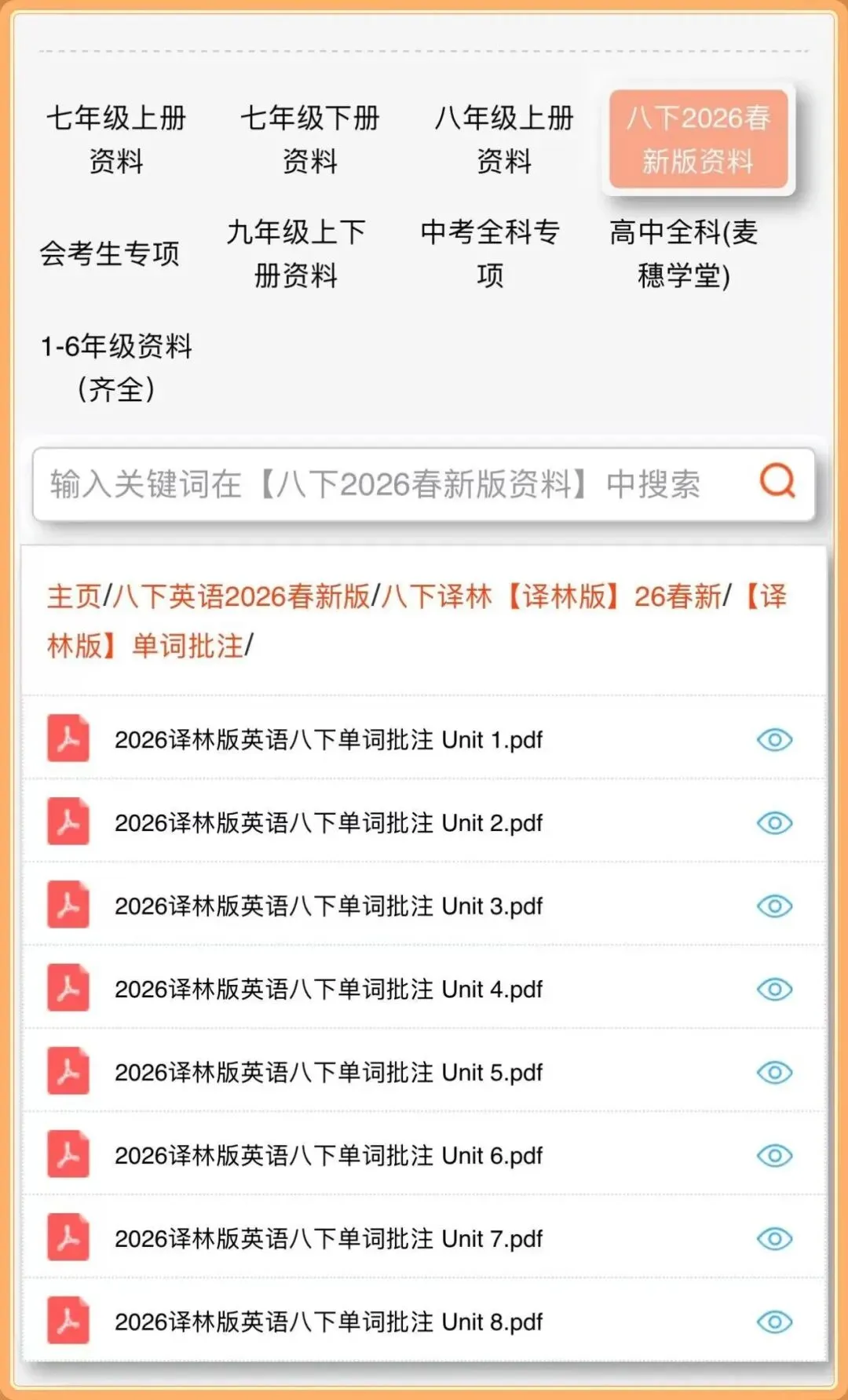 2026译林版八下英语|电子课本+课堂笔记+精品课件+课文寄单词音频+单词批注+教学设计+导学案,完整可打印!