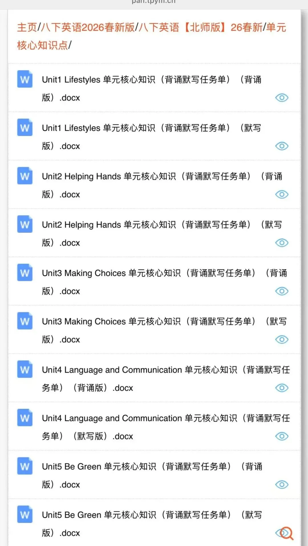 2026北师版八下英语|电子课本+单元核心知识点(背诵+默写)+一课一练+单元自测卷(含答案解析),完整可打印!
