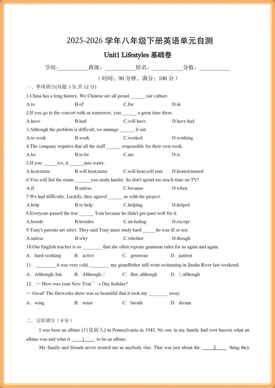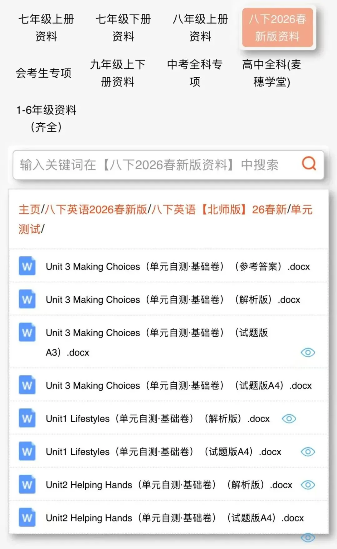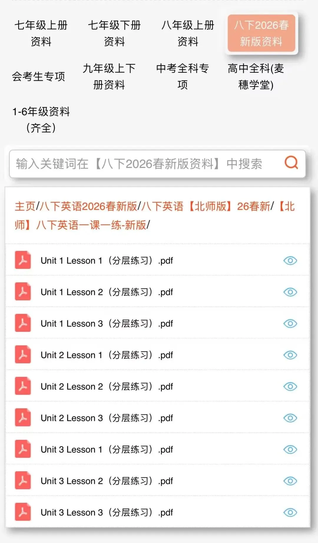 2026北师版八下英语|电子课本+单元核心知识点(背诵+默写)+一课一练+单元自测卷(含答案解析),完整电子版可打印!