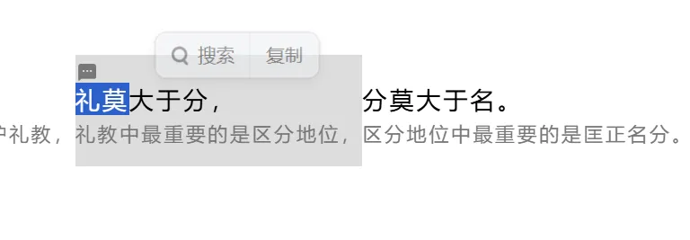 更实用的是双击查古汉语字典功能:碰到不认识的字,双击一下就能查读音和释义,完全不用跳转到其他App。