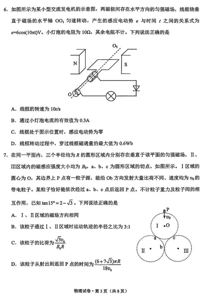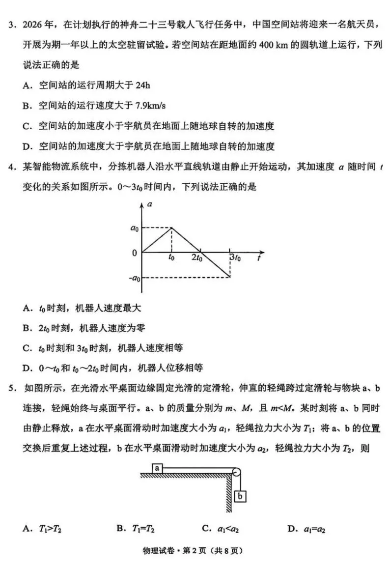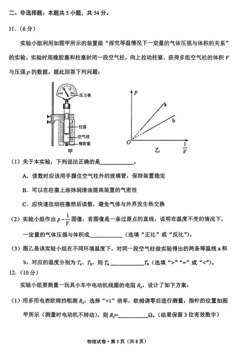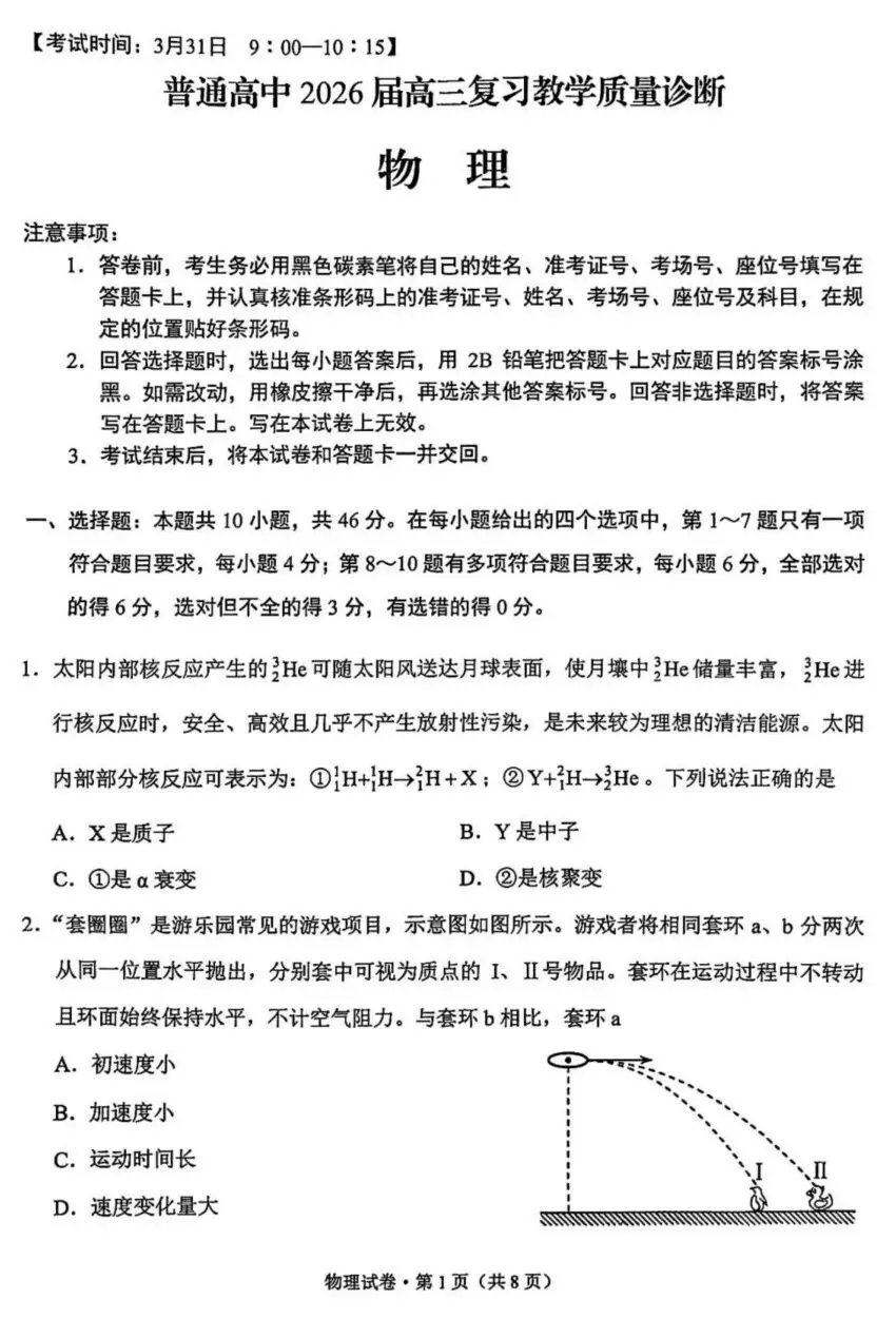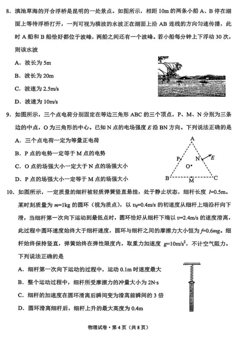 2026届昆明高三市统测(二)物理试卷及答案