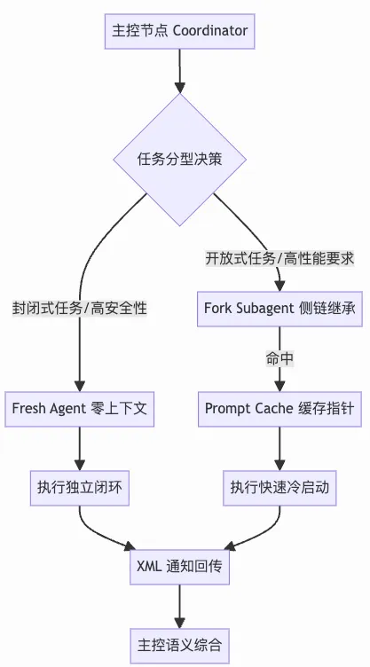 虽然“隔离”保证了稳定性,但其代价是破坏了 LLM 底层的Prompt Cache(提示词缓存),导致极高的冷启动延迟。Fork 机制正是为了对冲这一架构冲突而生的性能补丁。