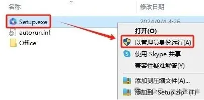 找到 Setup.exe,右键 → 以管理员身份运行。