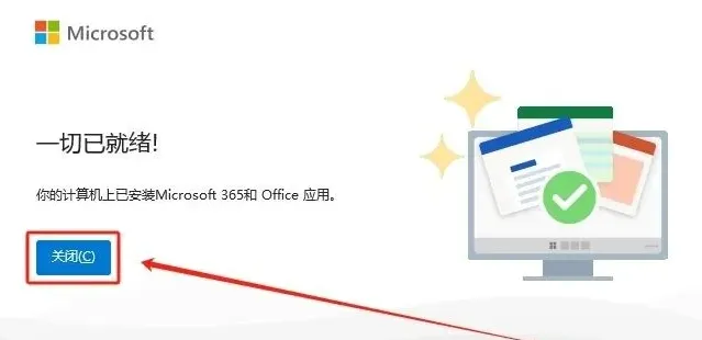 安装完成后,直接点【关闭】,先不要打开 Office。