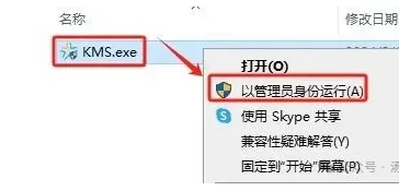 找到 KMS.exe,同样右键 → 以管理员身份运行。弹出用户账户控制提示,点【是】。