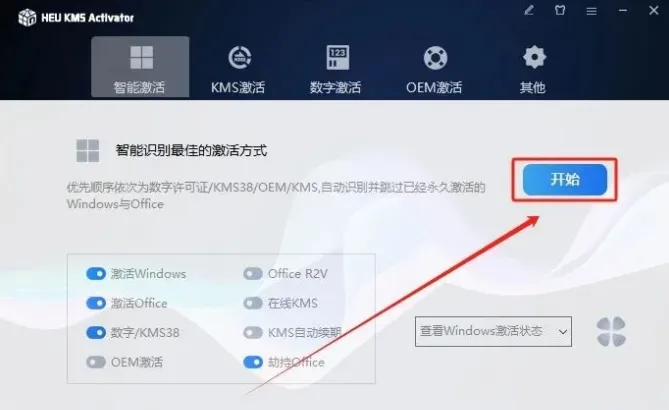 在激活工具界面,直接点【开始】。等提示 “激活成功”,点【确定】,然后关掉激活工具即可。