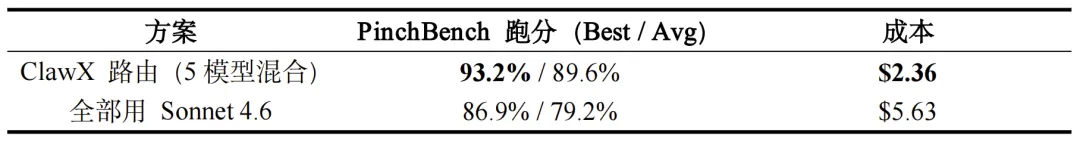 效果如何?在 PinchBench(包含 23 项 OpenClaw Agent 基准测试)上跑了一下:成本节省 58%,性能反而提升 6.3%!