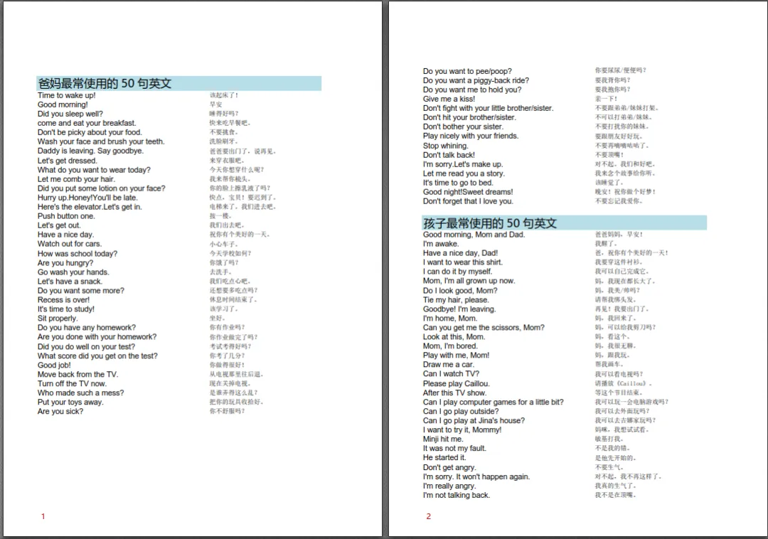 有人评价这套资料:从孩子出生到出国,让你能用20年的英文对话。日常生活用到的口语都在这!