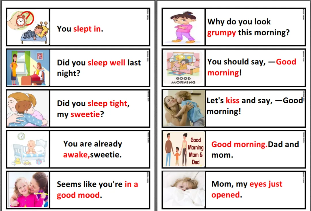 更多的精彩内容就不一一展示了,全套PDF、墙卡、及音频都整理好了,赶紧替孩子收藏吧!