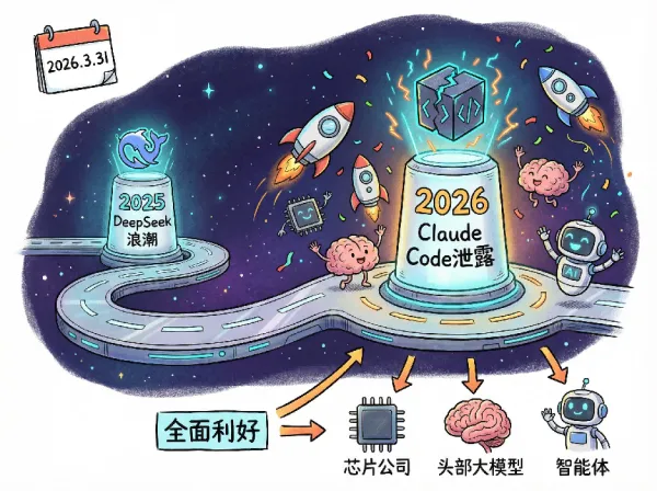Claude Code源代码的泄露,其意义堪比25年初DeepSeek突破带来的行业浪潮。里程碑事件往往一年只有一次,虽然其深远影响不会在几天内立刻显现,但它将全面利好所有头部大模型公司及底层芯片公司。