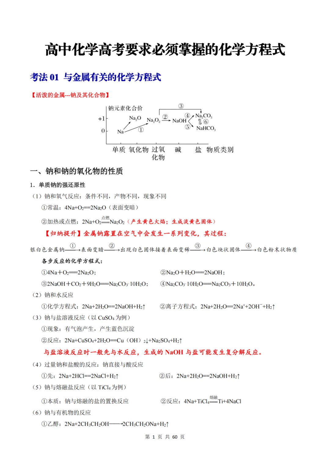 时间过得真快,还有67天就要迎来2026年新高考了,今天给大家分享一篇高中常考270个化学方程式汇总文章