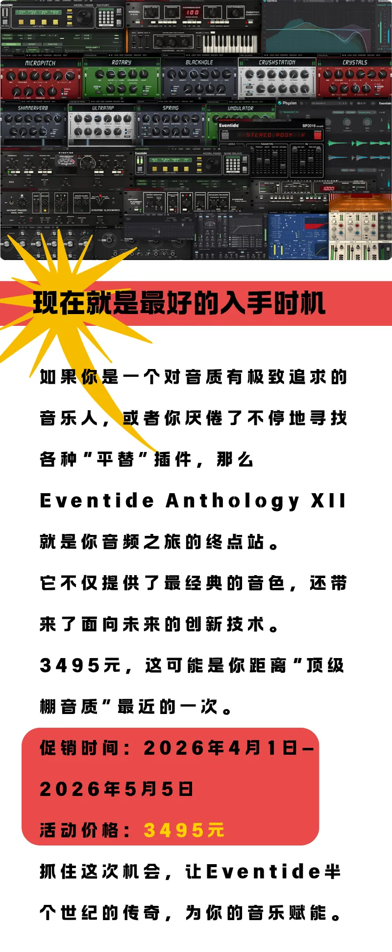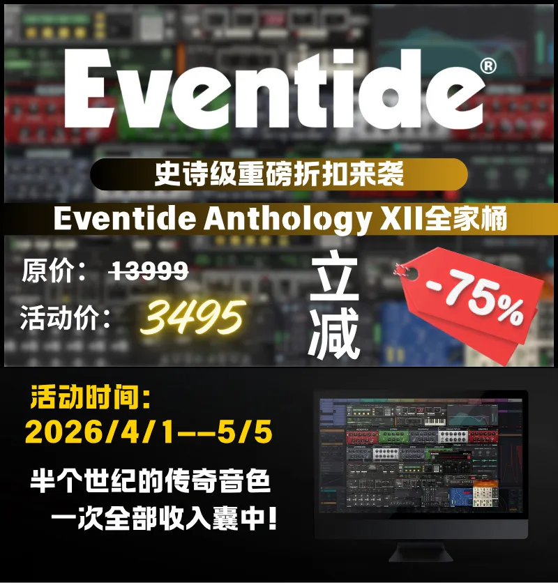 Eventide史诗级重磅折扣|32款插件立减25%,现已开始! 周一至周五 10:00-18:00 Mon- Fri A.M.10:00 – P.M.6:00 欢迎到店试听 Welcome to the store for a trial.