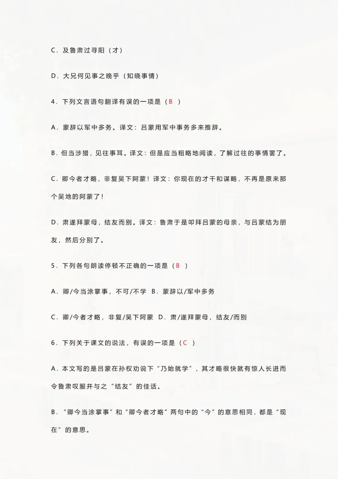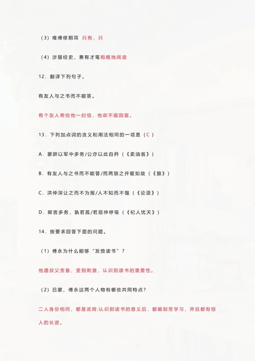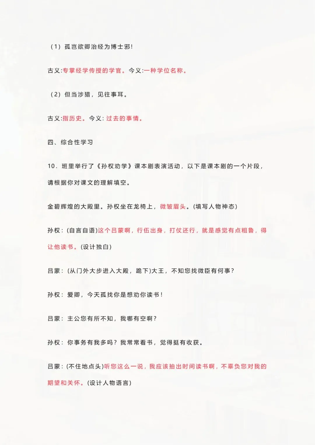 今天老师整理好了:七年级下册语文 《孙权劝学》文言文训练 电子版可打印!