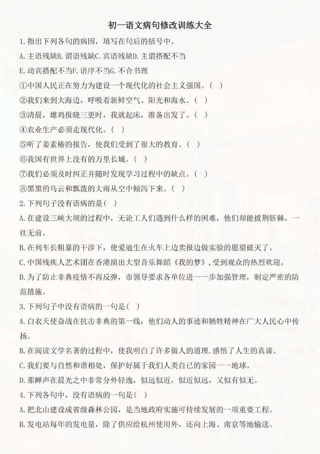 七年级下册语文 病句修改专题讲解 电子版可打印