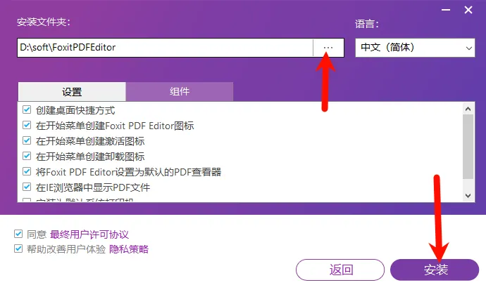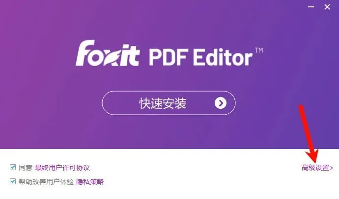 启动安装程序后,点击高级设置可以修改软件安装位置