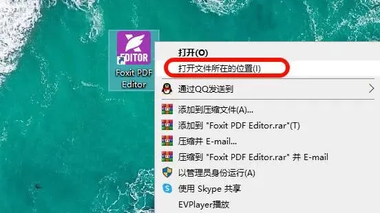 回到桌面,右击福昕PDF快捷方式,选择打开文件所在位置