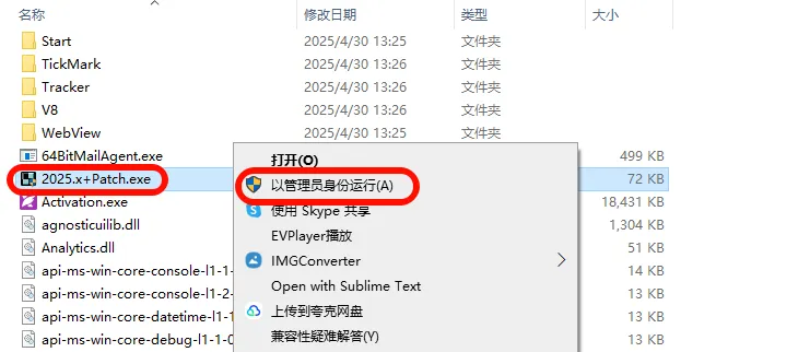右击拖拽过来的解11111111锁工具,选择以管理员身份运行