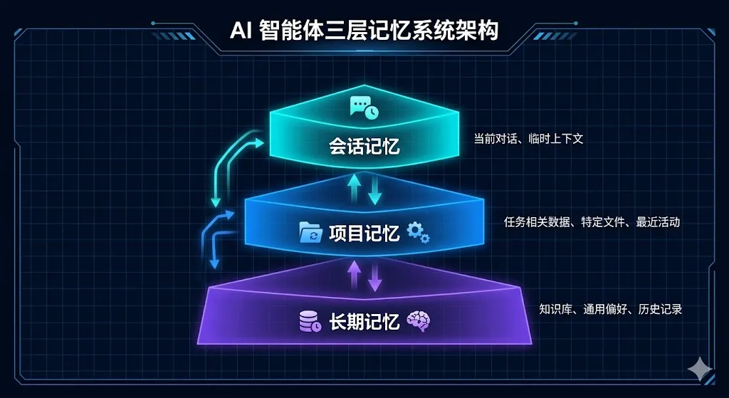 这个系统的精妙之处在于:它不是静态存储,而是动态”自愈”。当 AI 意识到上下文模糊时,会自动从更深层的记忆中提取相关信息,”缝合”回当前对话中。