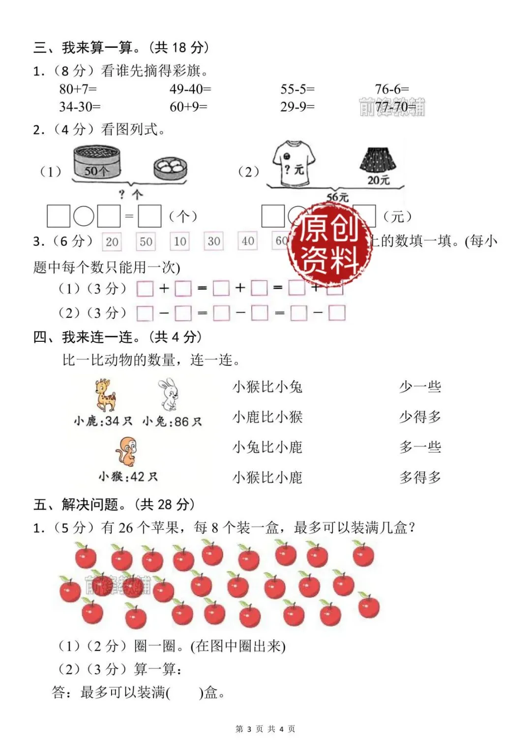 一下数学新整理的第三单元真题测试卷,题型新颖贴合教材,家长打印出来给孩子学习,及时查缺补漏✅