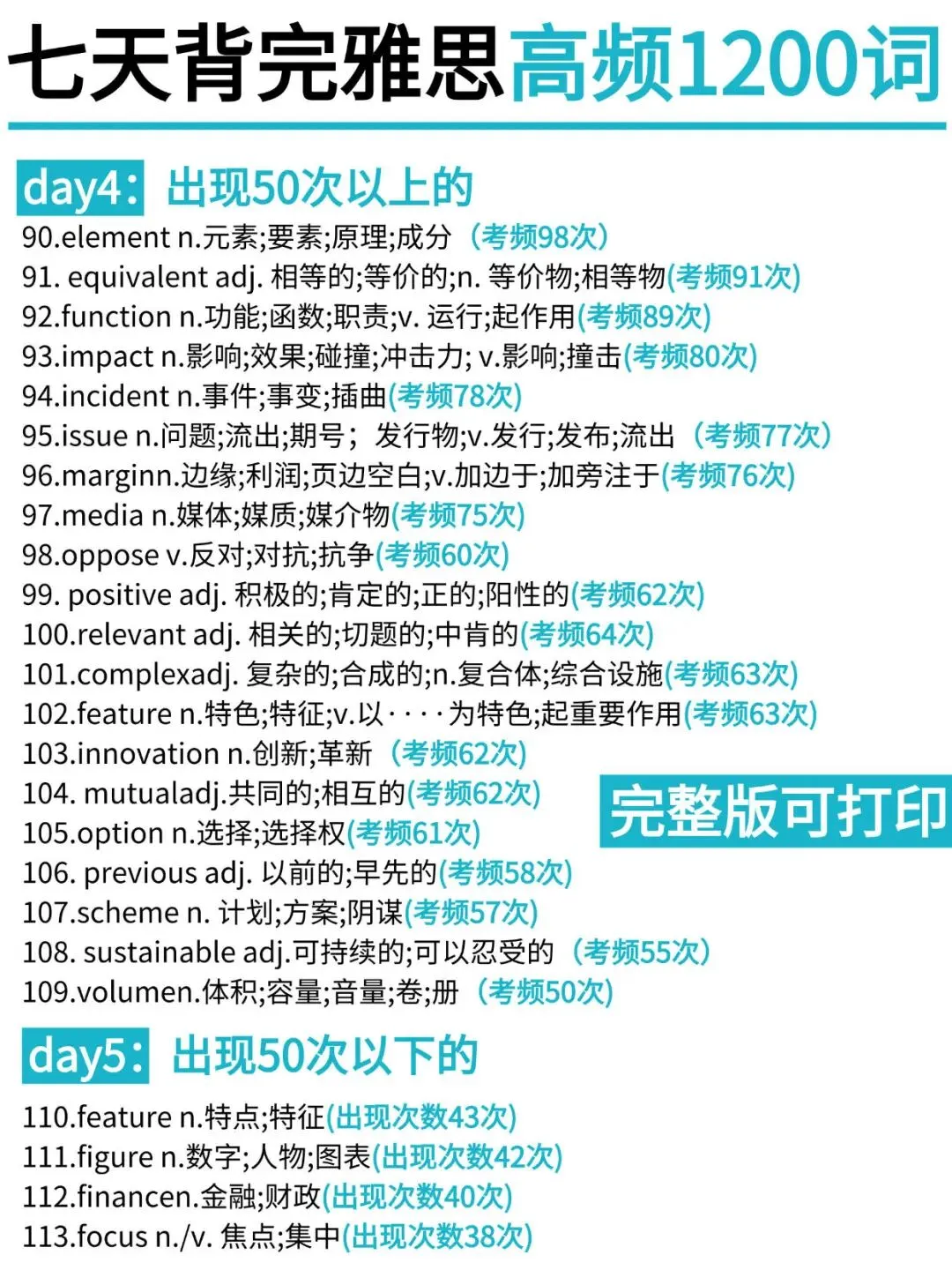 雅思1200个高频词汇(附高清PDF · 26年完整版)