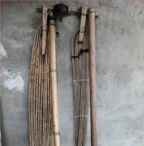 这一组东西看着像老竹弓、竹制弩具一类的老物件,具体叫法各地可能不一样。它们往墙上一靠,就有一种很浓的旧日子气息。以前在一些地方,这类工具和打猎、护院、上山下地有关,不是摆设,是实实在在派过用场的家伙什。