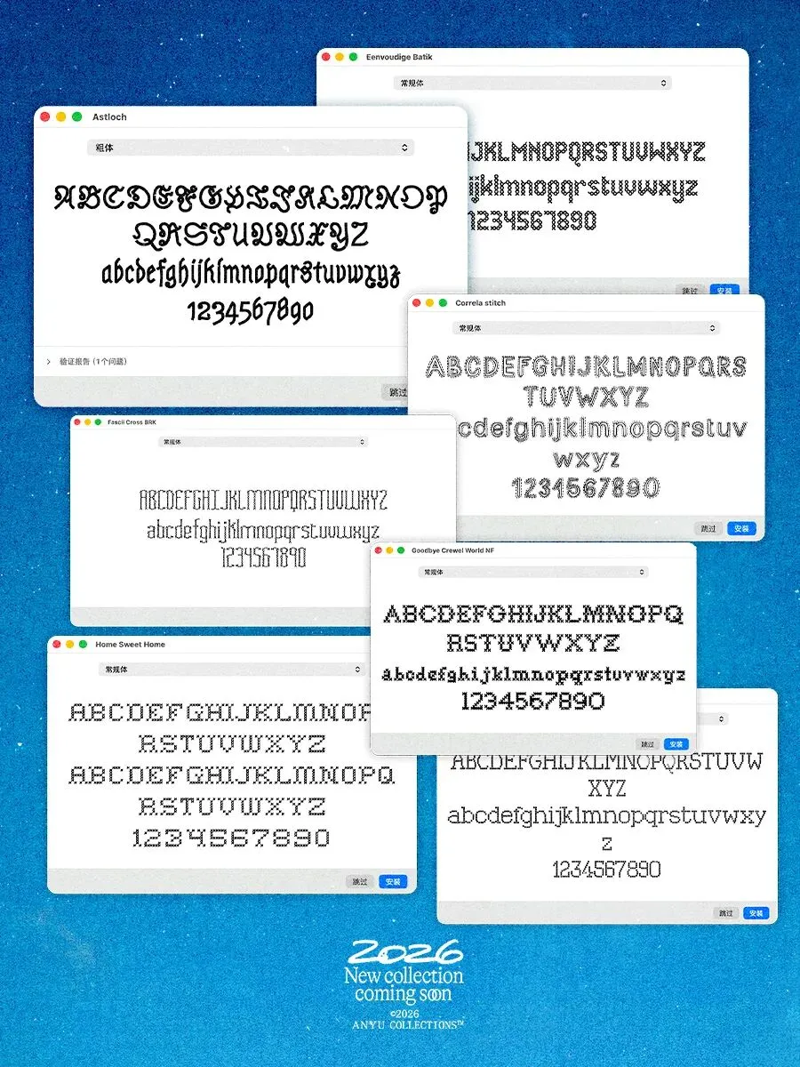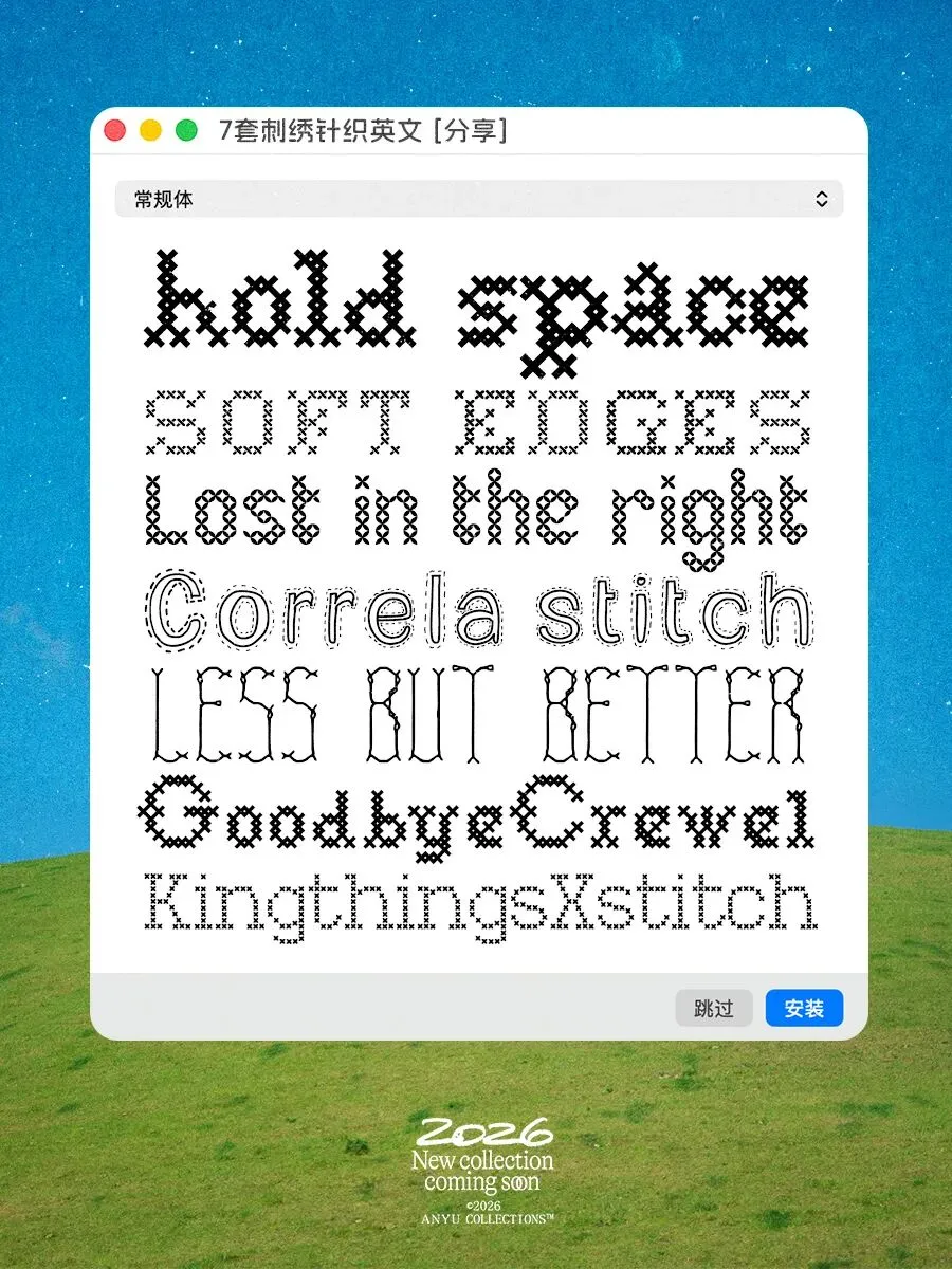 【免费下载】7套复古针织刺绣十字绣系列英文西文装饰字体安装包合辑Stitch Font