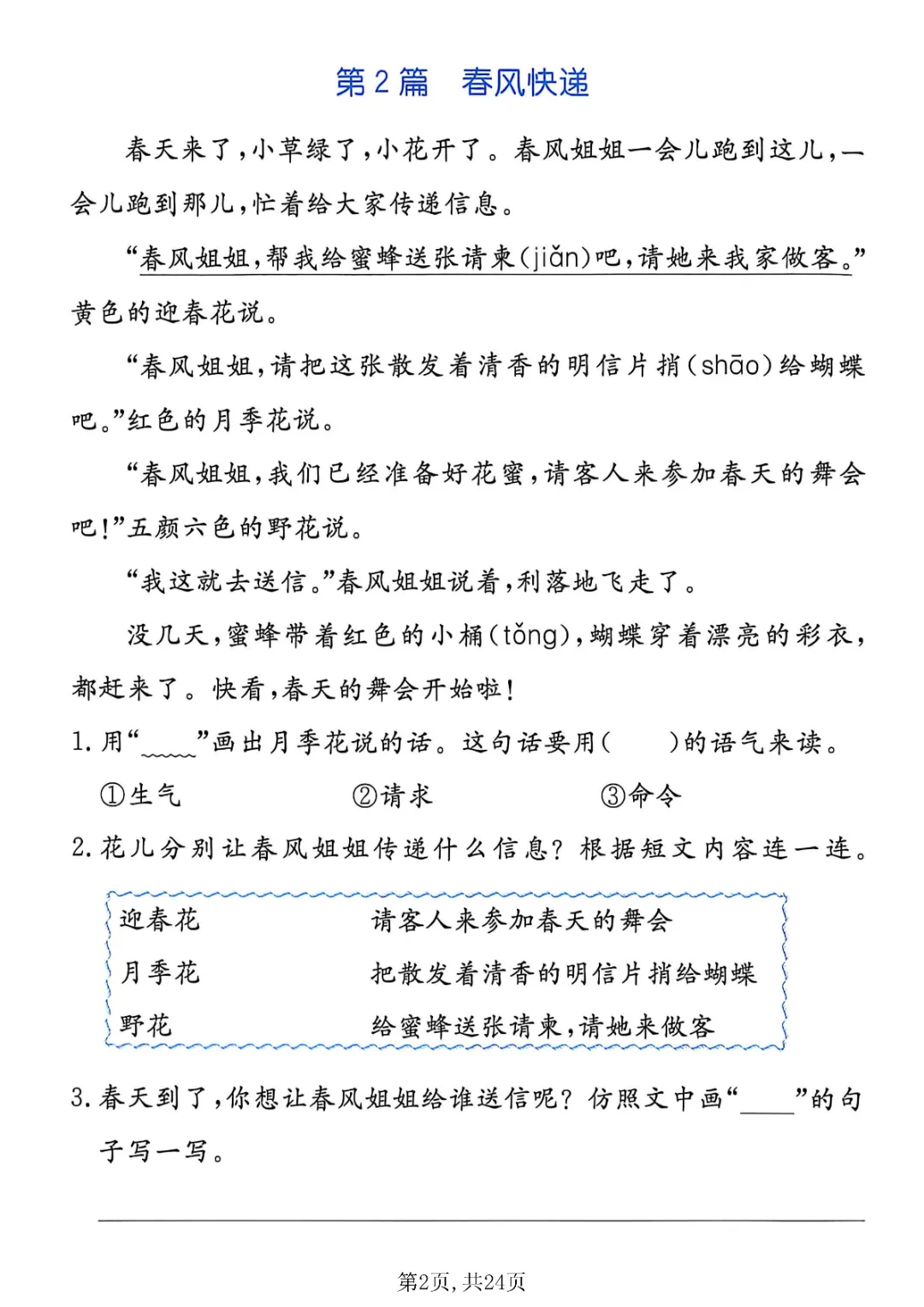2026年二年级下册语文阅读理解专项(电子版可打印)
