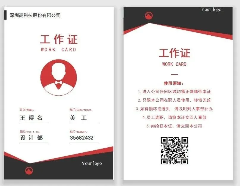 200+《员工工作证|工牌模板》word电子版,可免费下载打印修改
