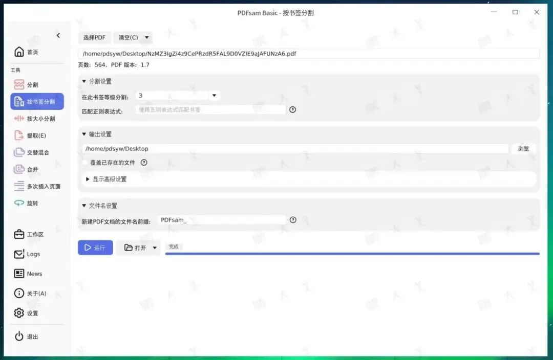 如果你的PDF本身带目录或书签,PDFsam可以按书签层级自动拆分。这对电子书、合同汇编、报告合集特别实用。