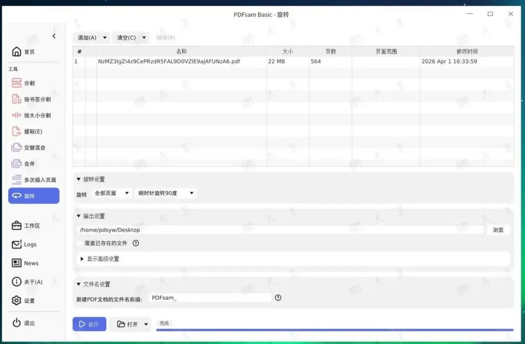 扫描文件方向不对时,不用重新扫描,直接在PDFsam中统一旋转即可。尤其是批量页面旋转,非常省事。