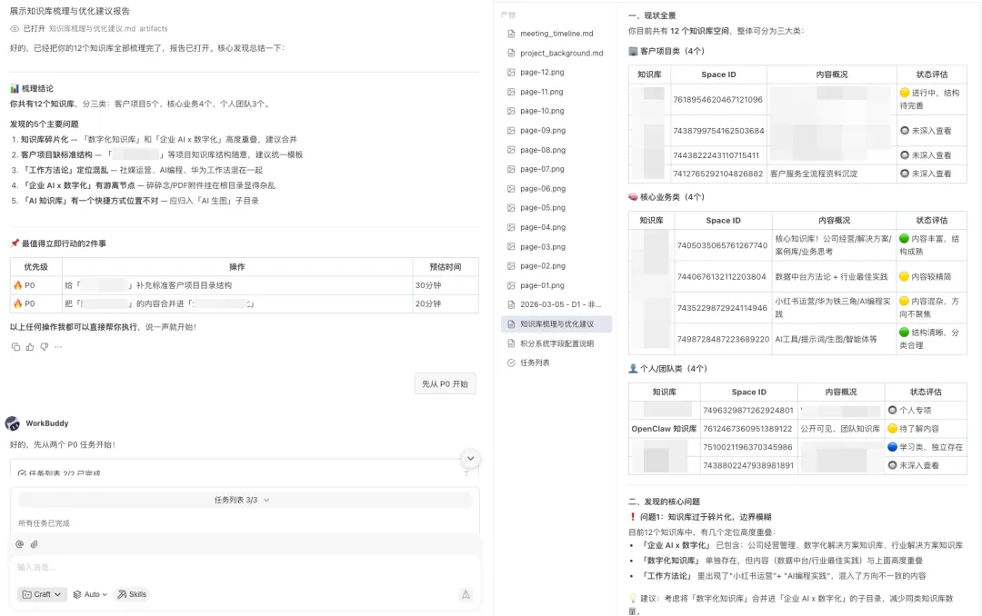 15分钟后回来,知识库已经整理完毕。文档归位,重复内容合并,索引自动生成。