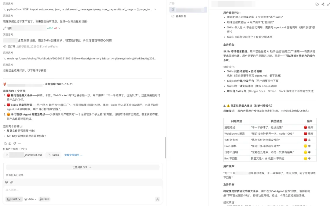 几分钟后,一份洞察报告推送到我面前。客户的新需求、行业的趋势变化、业务的新机会,都被提炼出来了。