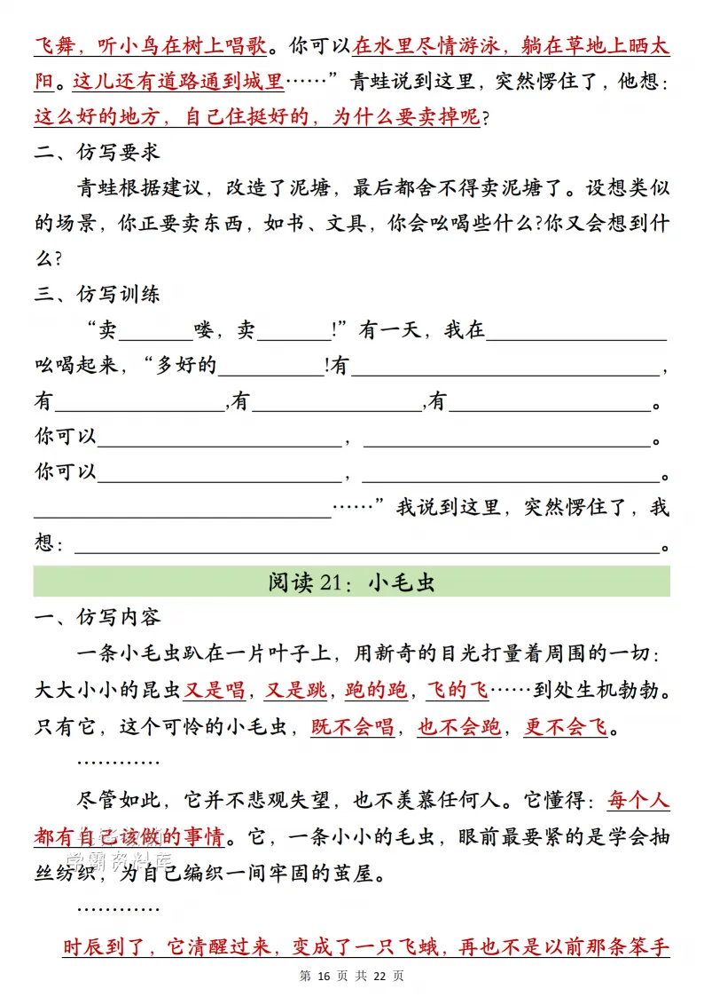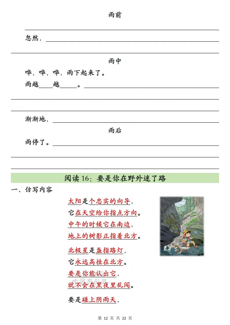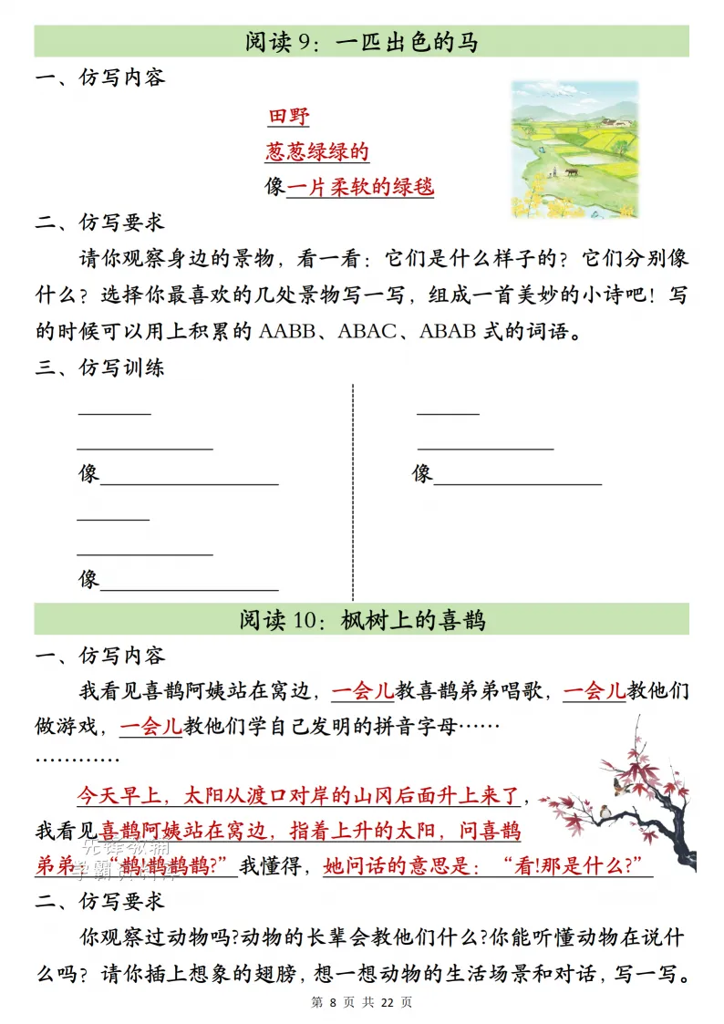 二年级(下)语文同步仿写小练笔,电子版可打印