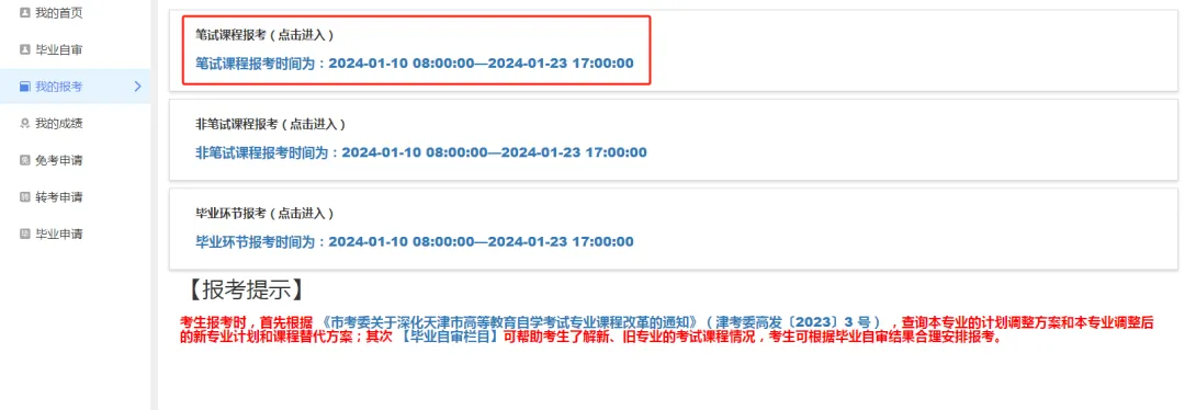 1.点击【我的报考】—【笔试课程报考】