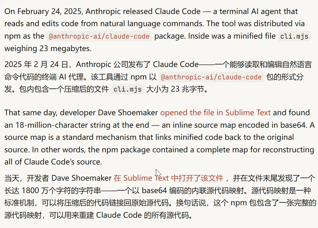 2025年2月,Claude Code刚发布的时候,就因为Source Map文件泄露过一次。当时Anthropic紧急修复。
