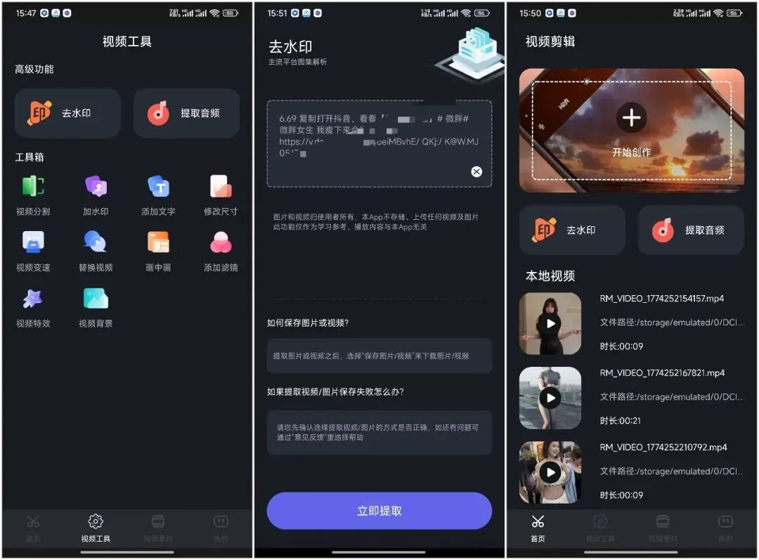 这是一款免费的视频一键去水印APP,堪称短视频创作者的必备工具。它无广告干扰,支持多平台解析,功能齐全,不仅能一键去除水印,还提供丰富的剪辑与模板功能,满足从去水印到二次创作的全流程需求,高效又省心。