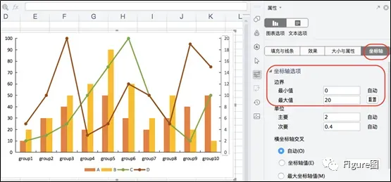 7.接下来我们继续根据具体的数值范围修改次坐标轴格式。