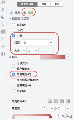 8.同时跟之前一样将折线图的标记点增大并且予以渐变填充。