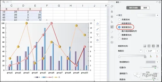 9.同时,簇状柱形图也予以渐变填充。
