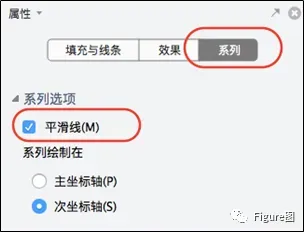 13.此时的折线图显示较为曲折,我们通过“系列”的“平滑线”选项予以平滑线条,使其进一步美观。