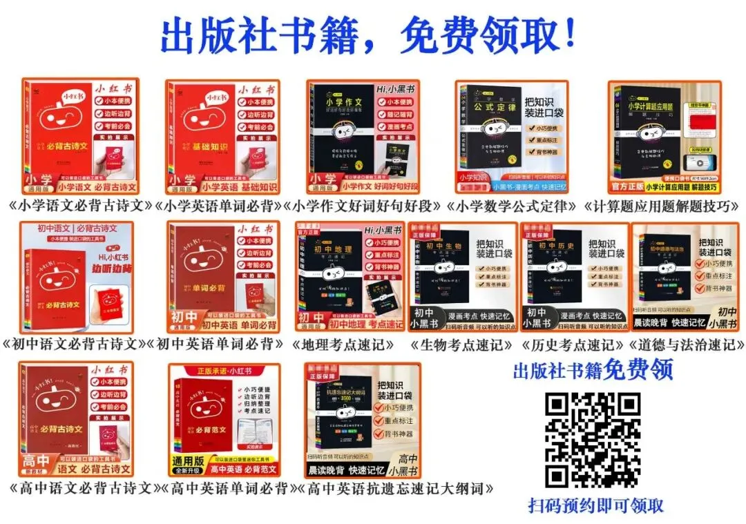 ✅初中可领取:《初中语文必备古诗文》《初中英语单词必背》《初中生物考点速记》《初中地理考点速记》《初中历史考点速记》《初中道法考点速记》等全可选!