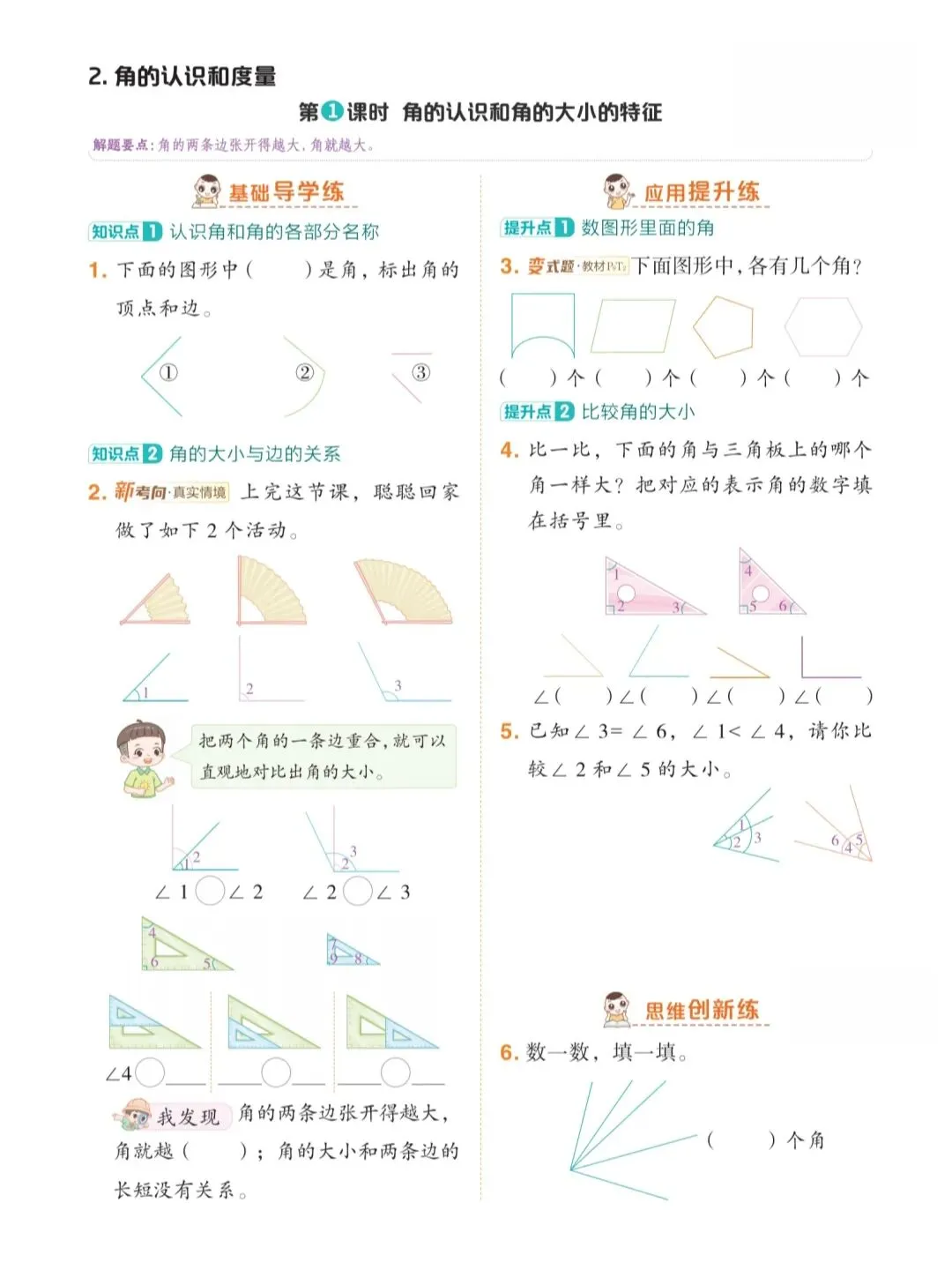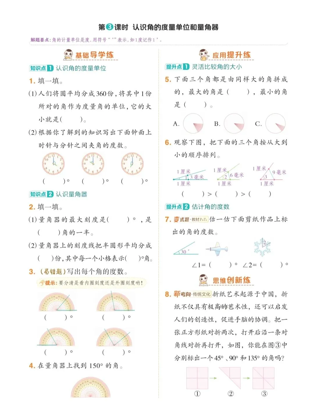 三年级数学下册《角的专项训练》完整电子版|高清可直接打印,练习巩固超实用