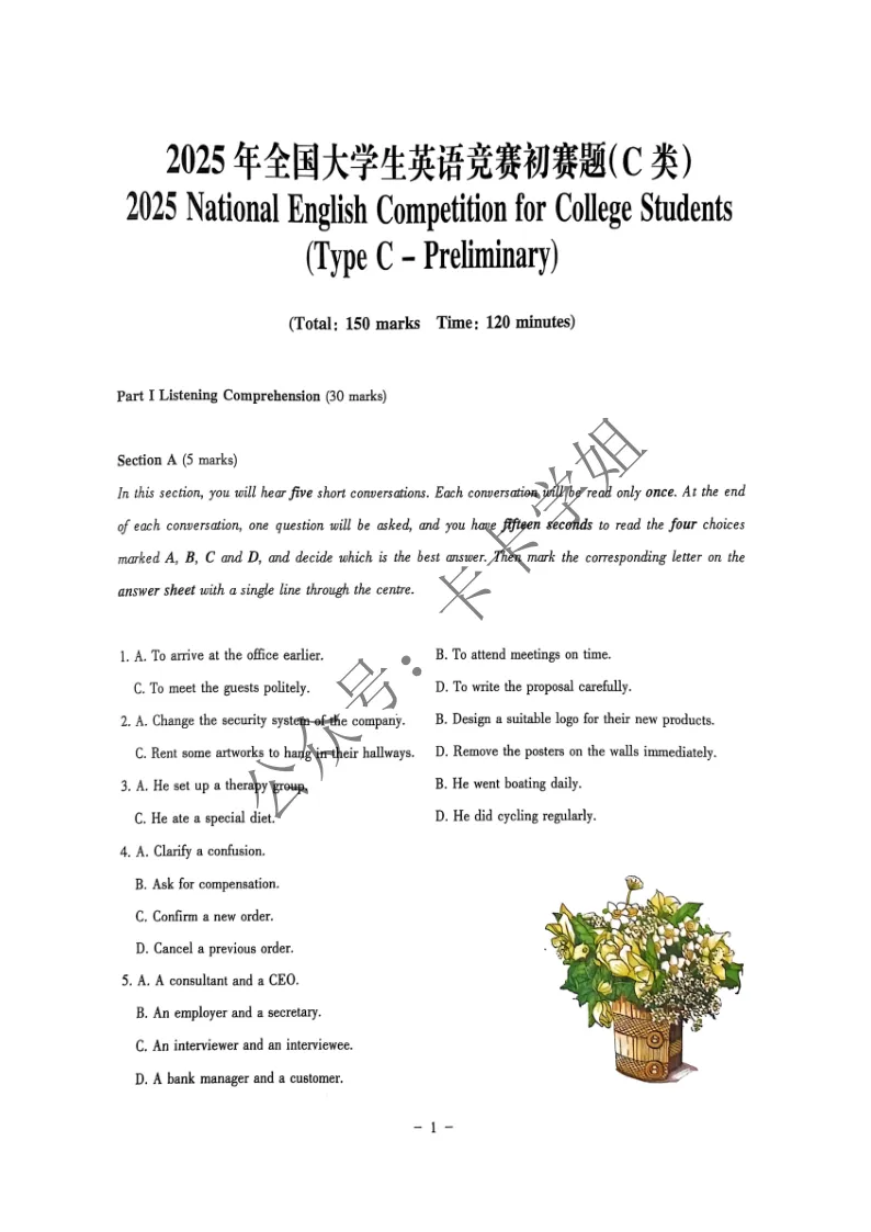 大英赛样题pdf | 2025年全国大学生英语竞赛ABCD类初赛真题及答案解析