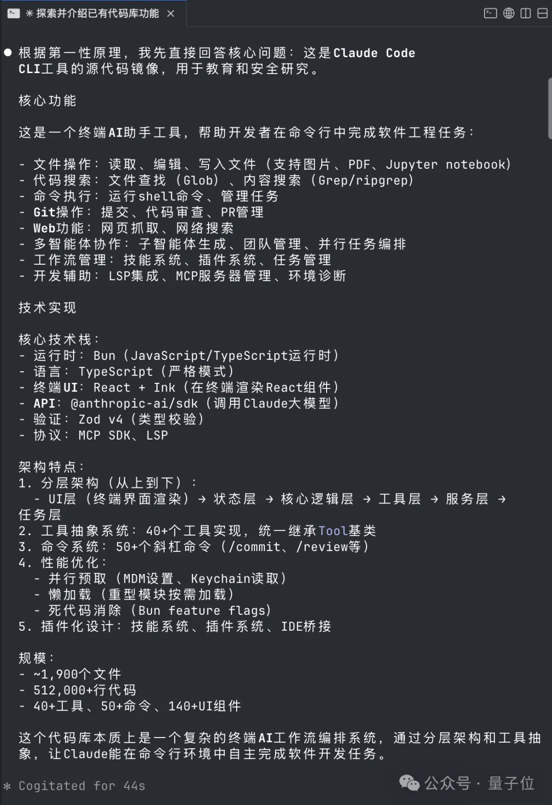 我们让Claude Code整理了一份对自己代码库的分析报告。
