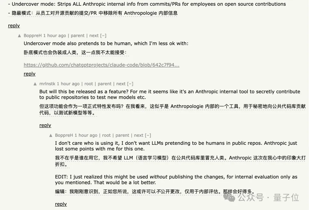 卧底模式(Undercover mode),向开源代码的提交PR时,移除所有Anthropic的信息。