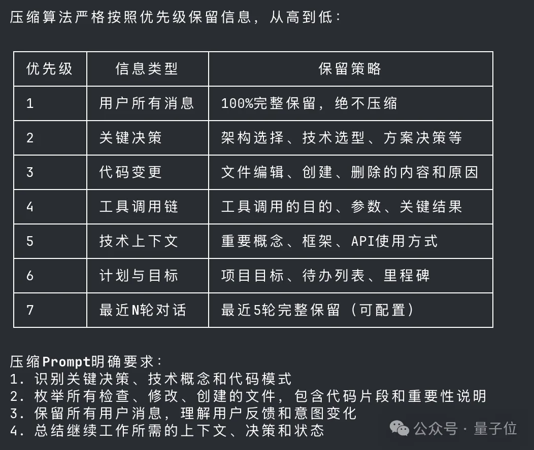 当对话token超过阈值时,自动启动上下文压缩,智能保留最关键的逻辑链条。