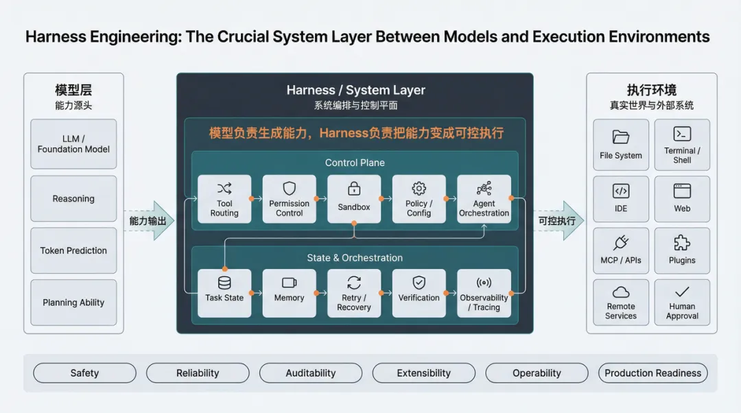 图 1:Harness Engineering 的重点不是模型本身,而是模型与执行环境之间的那一层系统设计