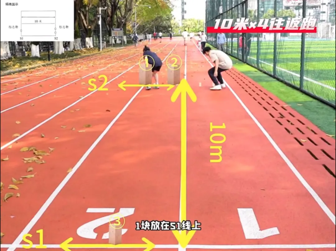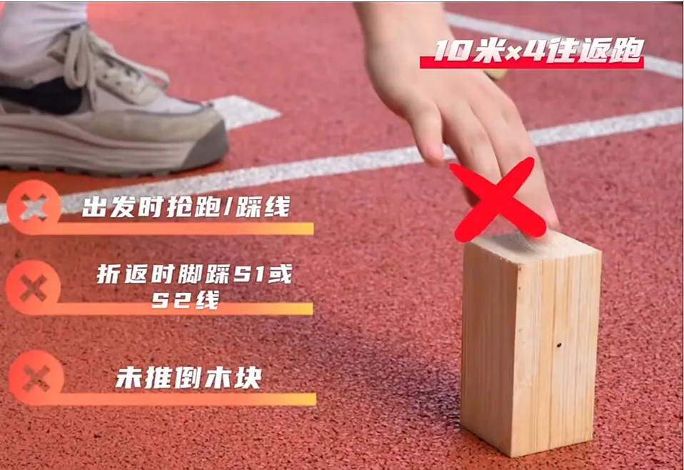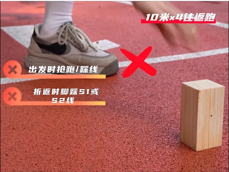 关于体测项目800米/1000米中长跑示范指导及违规说明等内容(点击查看),前面已为大家做了详细梳理,今天我们继续为大家更新4*10米测试标准、示范指导及违规说明!
