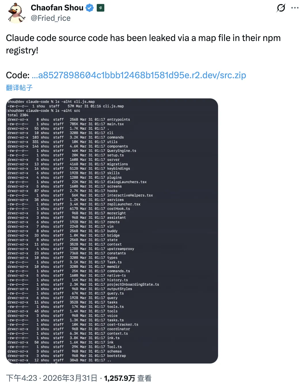 Anthropic用一种最戏剧性的方式,把AI工程师的底牌直接摊在了阳光下。Anthropic的Claude Code CLI完整源代码,因为一个低级的npm配置错误(.map文件泄露),在全球范围内“裸奔”——超1900个文件、总计51.2万行TypeScript代码被公之于众。