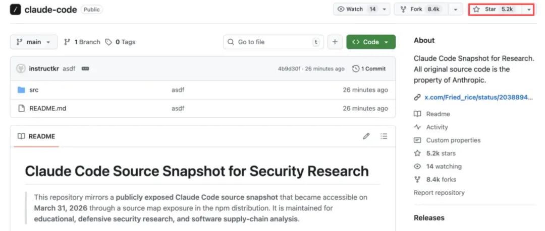 半小时内,克隆源码的GitHub项目星标冲破5k,全网开启狂欢模式。有人调侃:“Claude觉醒了,决定开源Claude Code。”
